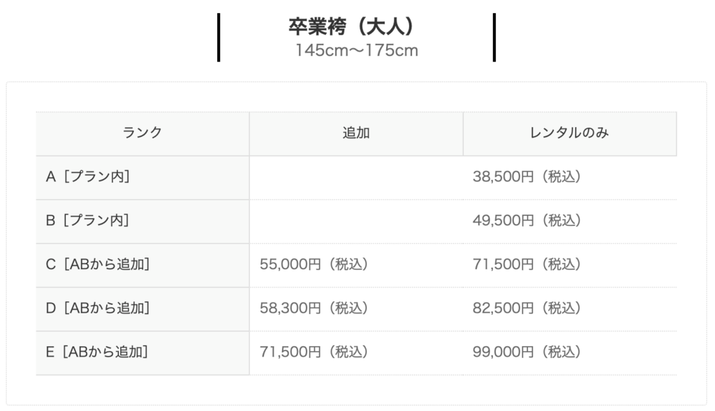 Cランク以上のお衣装をご希望の場合は差額が追加となります。