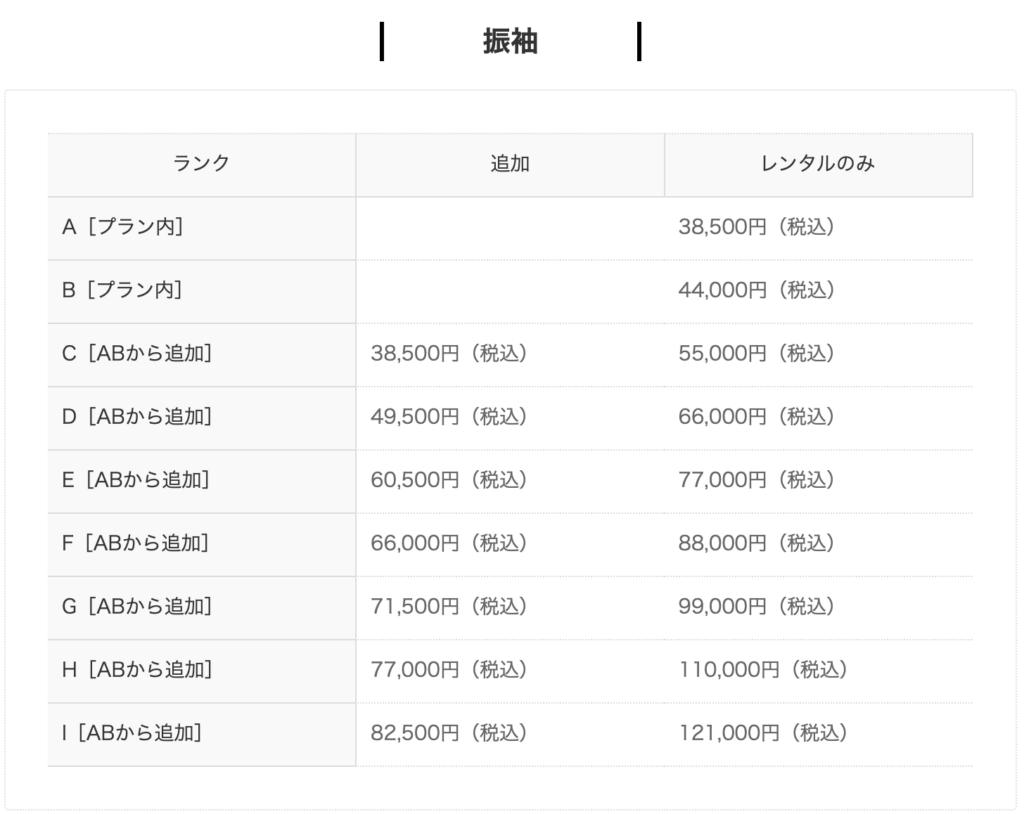Cランク以上のお衣装をご希望の場合は差額が追加となります。
